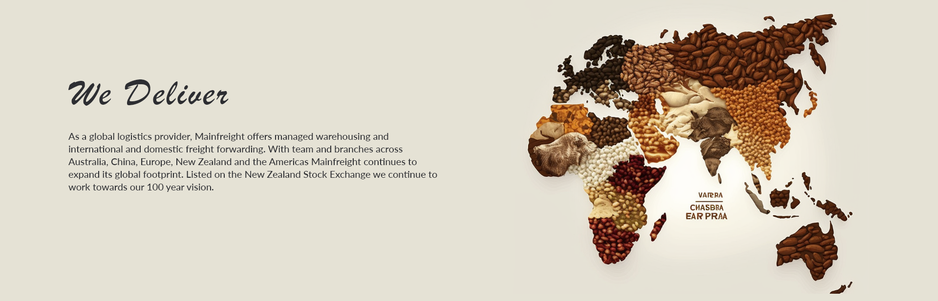 As a global logistics provider, Mainfreight offers managed warehousing and international and domestic freight forwarding. With team and branches across Australia, China, Europe, New Zealand and the Americas Mainfreight continues to expand its global footprint. Listed on the New Zealand Stock Exchange we continue to work towards our 100 year vision.